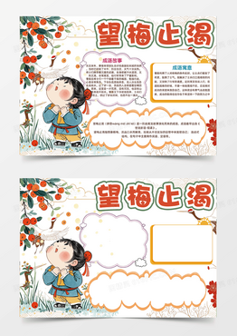 望梅止渴成语故事梅花手绘人物插画可爱卡通手抄报
