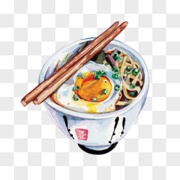 美食主题手绘平涂卡通葱花大碗香喷喷细丝面