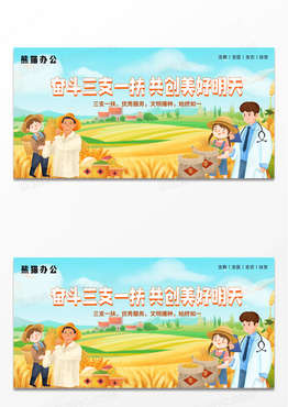 三支一扶农村老师农民医生黄色手绘展板展架设计模板设计