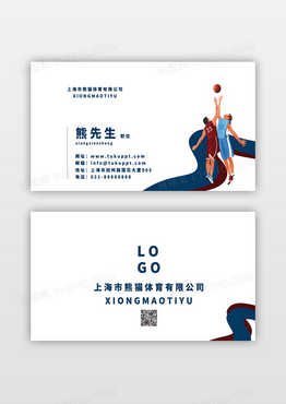 红蓝手绘插画篮球体育健身俱乐部卡通创意名片