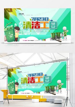 手绘卡通孩子们一起打扫倒垃圾场景素材