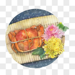 手绘国潮大闸蟹菊花酒柿子场景免抠素材