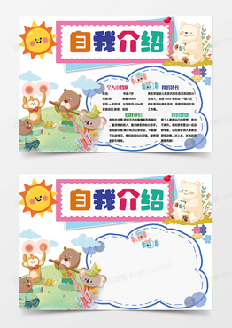 彩色简约手绘自我介绍手绘小报手抄报动物