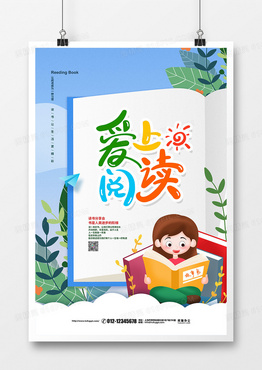 手绘插画简约爱上阅读读书分享会宣传海报设计