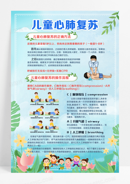 彩色卡通手绘儿童心肺复苏宣传文字海报设计