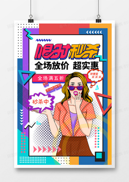 浪漫波普手绘限时秒杀促销活动海报