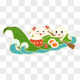 手绘国潮拟人粽子划船素材
