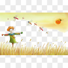 手绘卡通在海上乘床捕鱼的渔民免抠元素