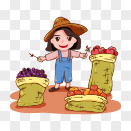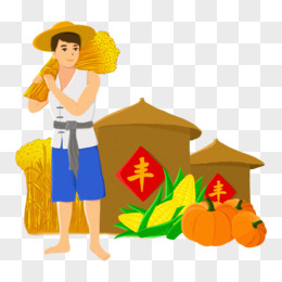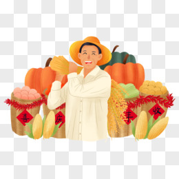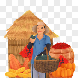 立秋之手绘卡通女孩扒开稻田中的小麦