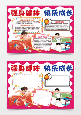 强身健体快乐成长运动可爱操场插画手绘粉色手抄报