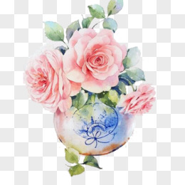 玫瑰花与青花瓷花瓶