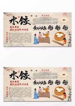 水墨复古中国风手工饺子饺子背景墙展板设计水饺