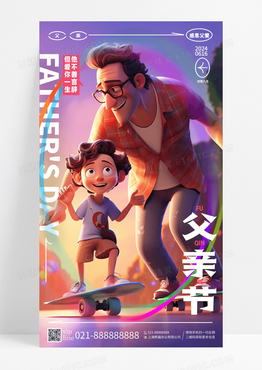 简约插画父亲节感恩父亲手机宣传海报