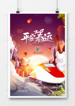 手绘插画回家过年春节2022平安春运海报