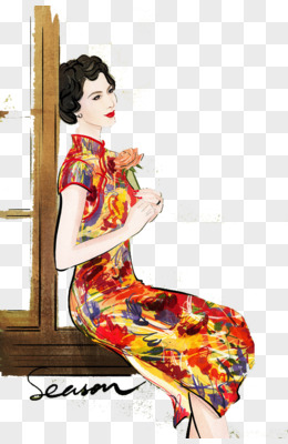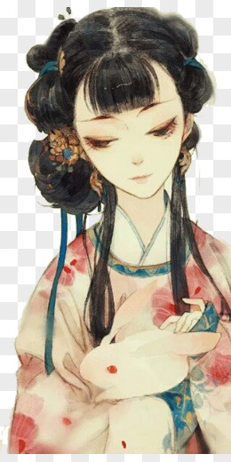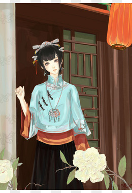 古典国风旗袍美女面部上半身特写手绘原创元素