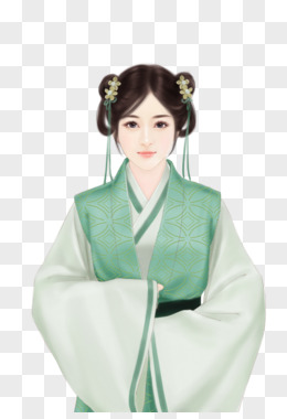 一组手绘四季系列古风人物之手拿梅花的少女素材