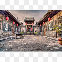 手绘中国风四合院海报背景