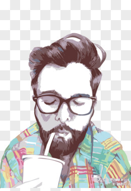 创意手绘卡通炫酷太阳墨镜喝饮料