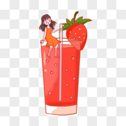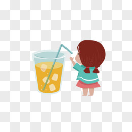 卡通手绘免抠喝男孩坐在杯子上喝饮料免抠元素