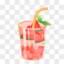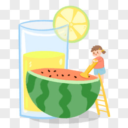 手绘冰爽夏日吃西瓜喝饮料的小男孩