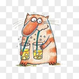 卡通手绘动物喝饮料免抠元素