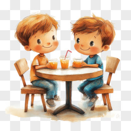 卡通手绘风格聚会一起喝饮料的可爱男孩免抠元素