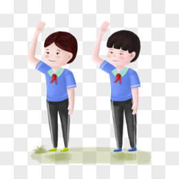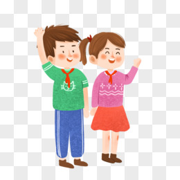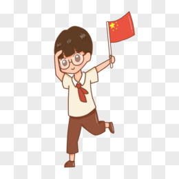 卡通手绘女孩拿着旗帜庆祝免抠元素