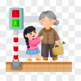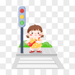 卡通手绘小朋友闯红灯免抠元素