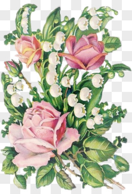 漂亮粉色手绘卡通手捧花花朵花卉元素