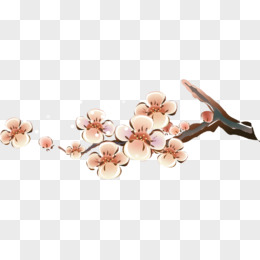 手绘中式水墨山水桃花风景素材