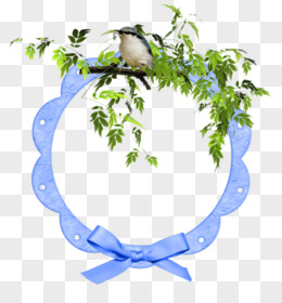 创意手绘合成蓝色的蝴蝶结植物小鸟