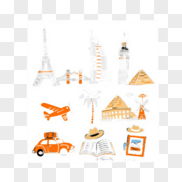 橙黑线稿世界地标卡通手绘元素