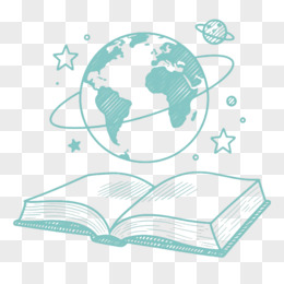 浅青绿手绘书页地球仪漂浮元素