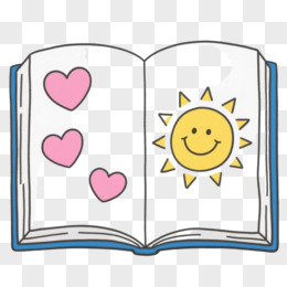蓝边书页粉色爱心卡通手绘元素