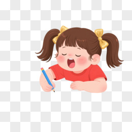 棕发女孩打哈欠卡通手绘元素