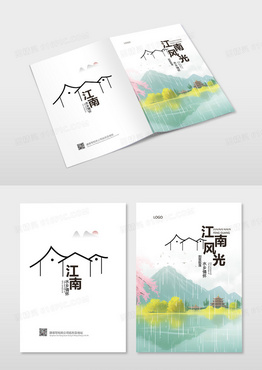 大气手绘水墨水彩江南水乡中国风画册封面设计