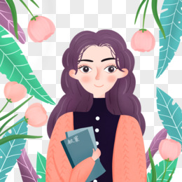 手绘卡通正侧面批作业的女老师插画免抠元素