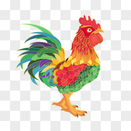 手绘插画风公鸡母鸡一起啄食免抠元素