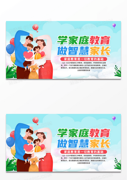 手绘学家庭教育做智慧家长家庭教育宣传展板