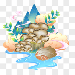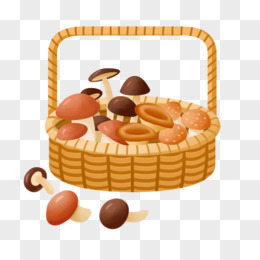 卡通手绘免抠拿着一筐蘑菇的女孩素材