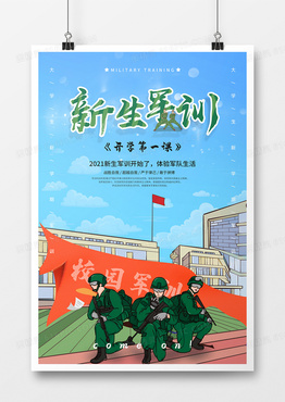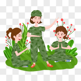 一组卡通手绘插画风学生军事夏令营项目合集元素