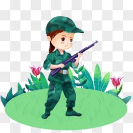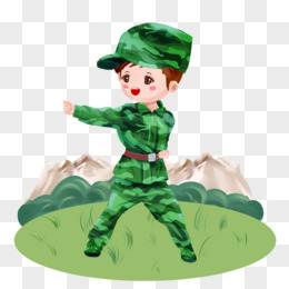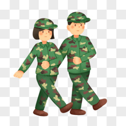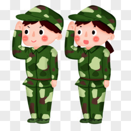 手绘插画三个小孩穿迷彩服军训踏步免抠素材