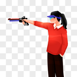 一组手绘卡通中学生军事夏令营场景之射击训练素材