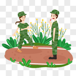 手绘卡通军训学生闲聊素材