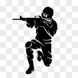 手绘黑白半蹲射击打枪剪影元素
