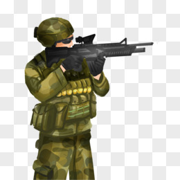 手绘插画风穿迷彩服射击场景元素