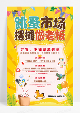 橘色卡通手绘跳蚤市场摆摊做老板跳蚤市场海报设计