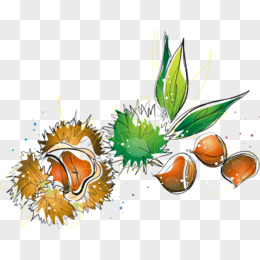 手绘卡通秋天坚果干果一盘炒栗子免抠素材