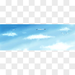 蓝色白色云层卡通城市手绘海报背景