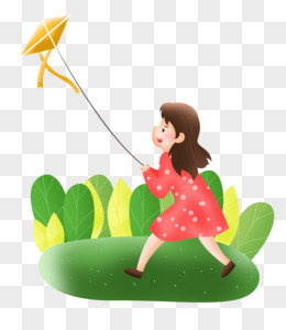 手绘卡通草地上躺着的男孩女孩免抠素材